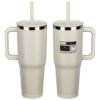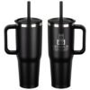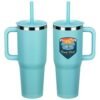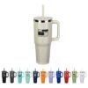 The SENSO® Summit 40 oz Vacuum Insulated Stainless Steel Travel Mug is crafted from 18/8 stainless steel, it features a nice powder-coated matte finish, color-matched plastic handle and straw, a press-in straw lid to prevent spills and a copper-lined and double-wall insulation for temperature retention. This travel mug keeps your drinks hot for up to 6 hours or cold for up to 16 hours and it is compatible with car and truck cup holders. The SENSO® Summit is also BPA-free and FDA-certified. Complies with FDA, Prop 65. 10.125″ H x 3.875″ Diameter